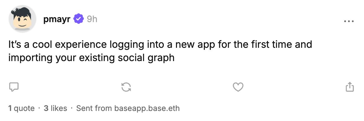I posted about how seamless the experience was for me from the Base app and then viewed that post through the Farcaster app.